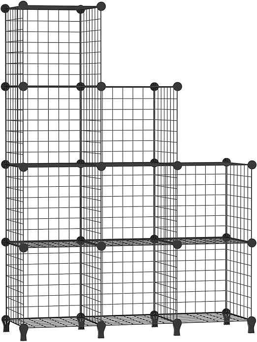 AWTATOS Estante de Almacenamiento de Cubos de Alambre, 9 Cubos, Organizador de Cubos de Almacenamiento modulares, Estante de Alambre de Hierro Multiuso, Estante para Sala de Estar, hogar, Negro