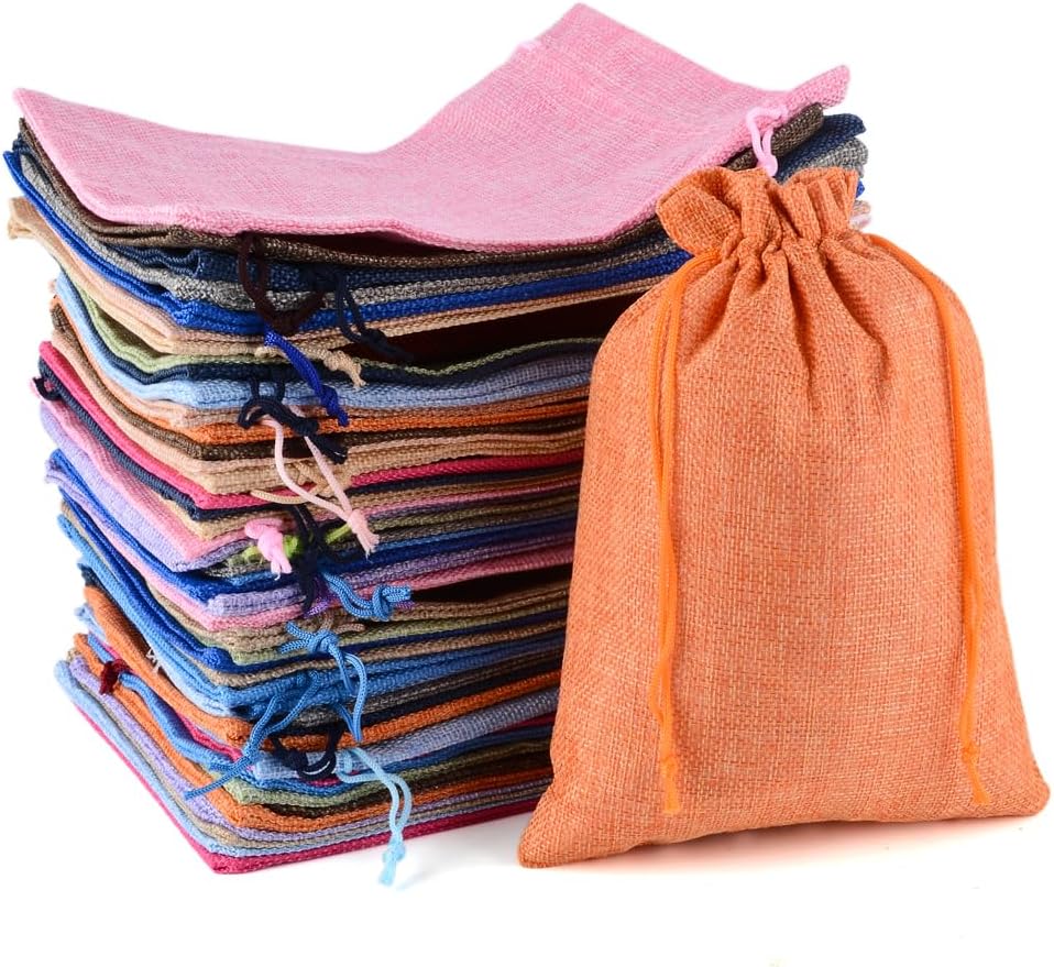 YFZYT 50 bolsas de yute de 20 x 30 cm, bolsas de algodón, bolsas de lino con cordón, bolsas de yute, reutilizables, bolsas de regalo para manualidades, bodas, fiestas, Navidad (multicolor)