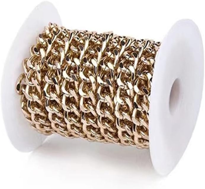 Cadenas de aluminio de 16.4 pies de 11 x 8.5 x 2.2 mm, eslabones trenzados, cadenas de cable cruzadas, chapadas en oro con carrete para hacer colgantes y collares