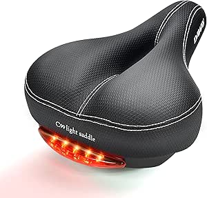 Daway C99 – Sillín de bicicleta, unisex, cómodo con asiento ancho de piel, para bicicleta de montaña con luz trasera, suspensión, suave, espuma acolchada, resistente al agua, compatible con la mayoría de bicicletas