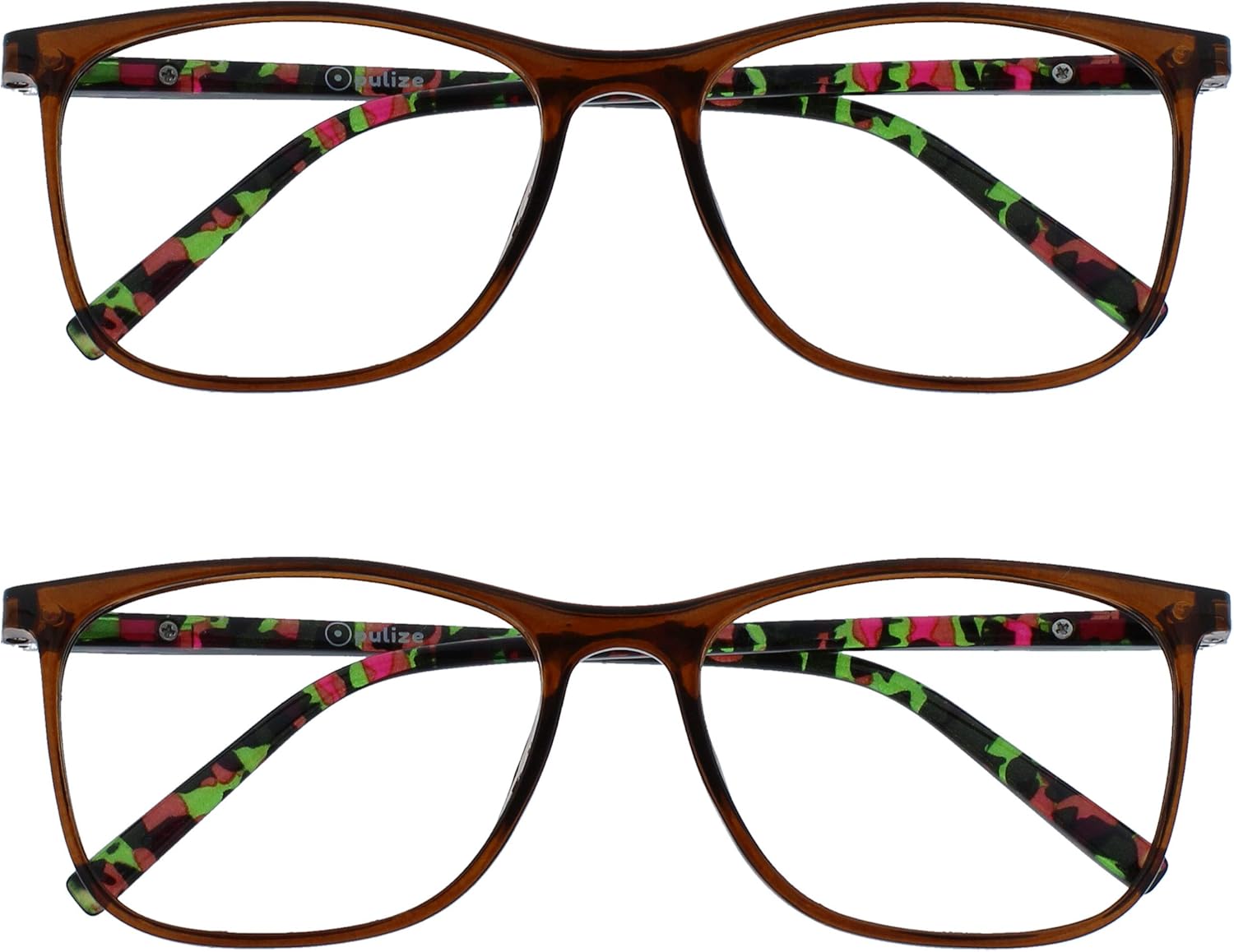 OPULIZE Gafas de lectura de arco Paquete de 2 Patillas estampadas con marco rectangular delgado y elegante Bisagras de resorte Resistente a los arañazos Marrón Hombres Mujeres RR66-2 +2.50