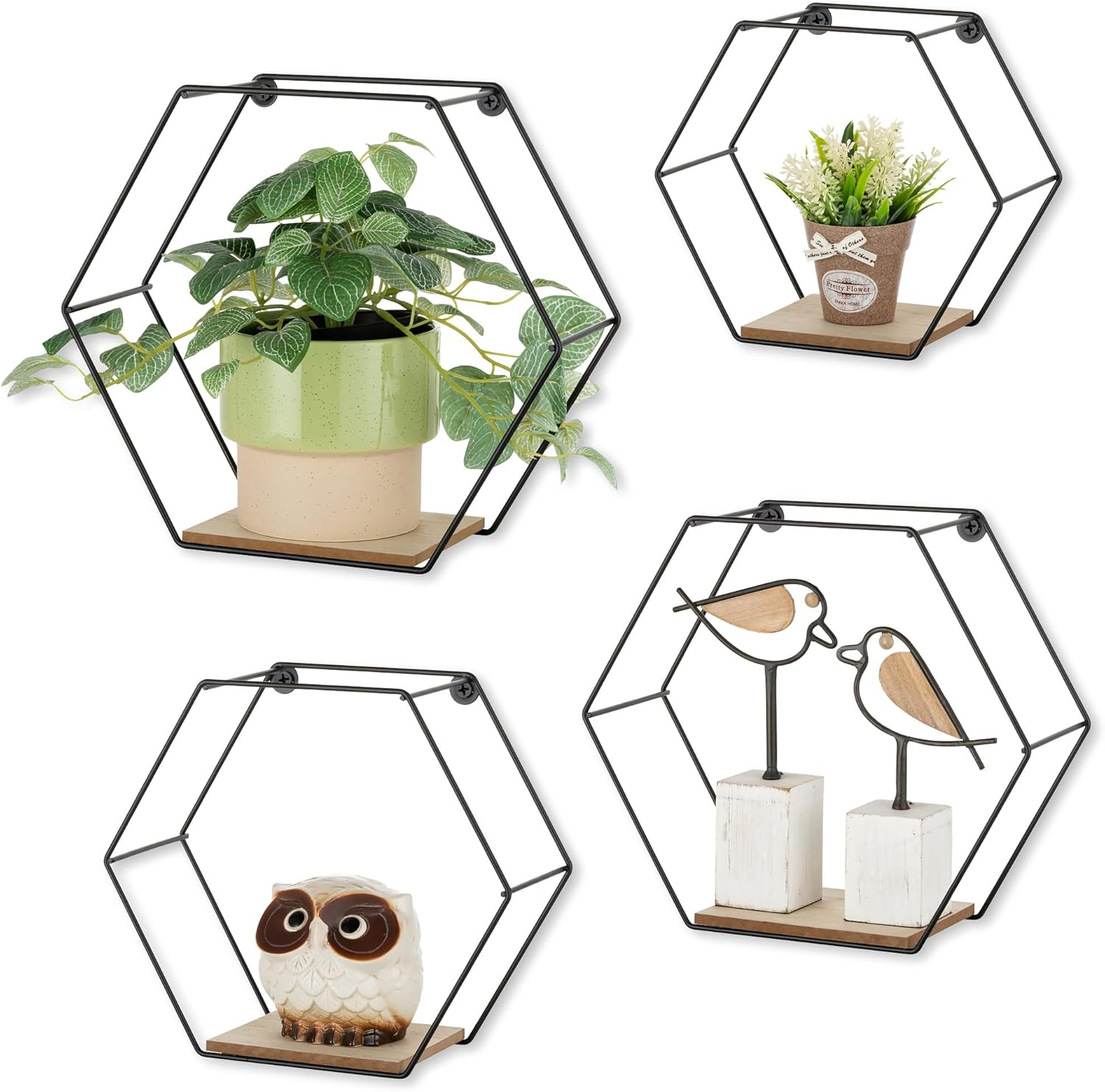 Walasis Estante de Pared Hexágono de Metal Negro: Juego de 4 Estantes Flotantes Estante de Pared Decoración de Pared Estante de Plantas Estético para Sala de Estar Dormitorio Pasillo