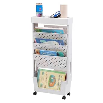 DOEWORKS Estantería Libros con Ruedas Móvil Estantería Carrito Auxiliar 5 Niveles Estante para Libros Pequeño Estantería Rodante, Carro de Servicios para Salón Baño Dormitorio Oficina, Blanca