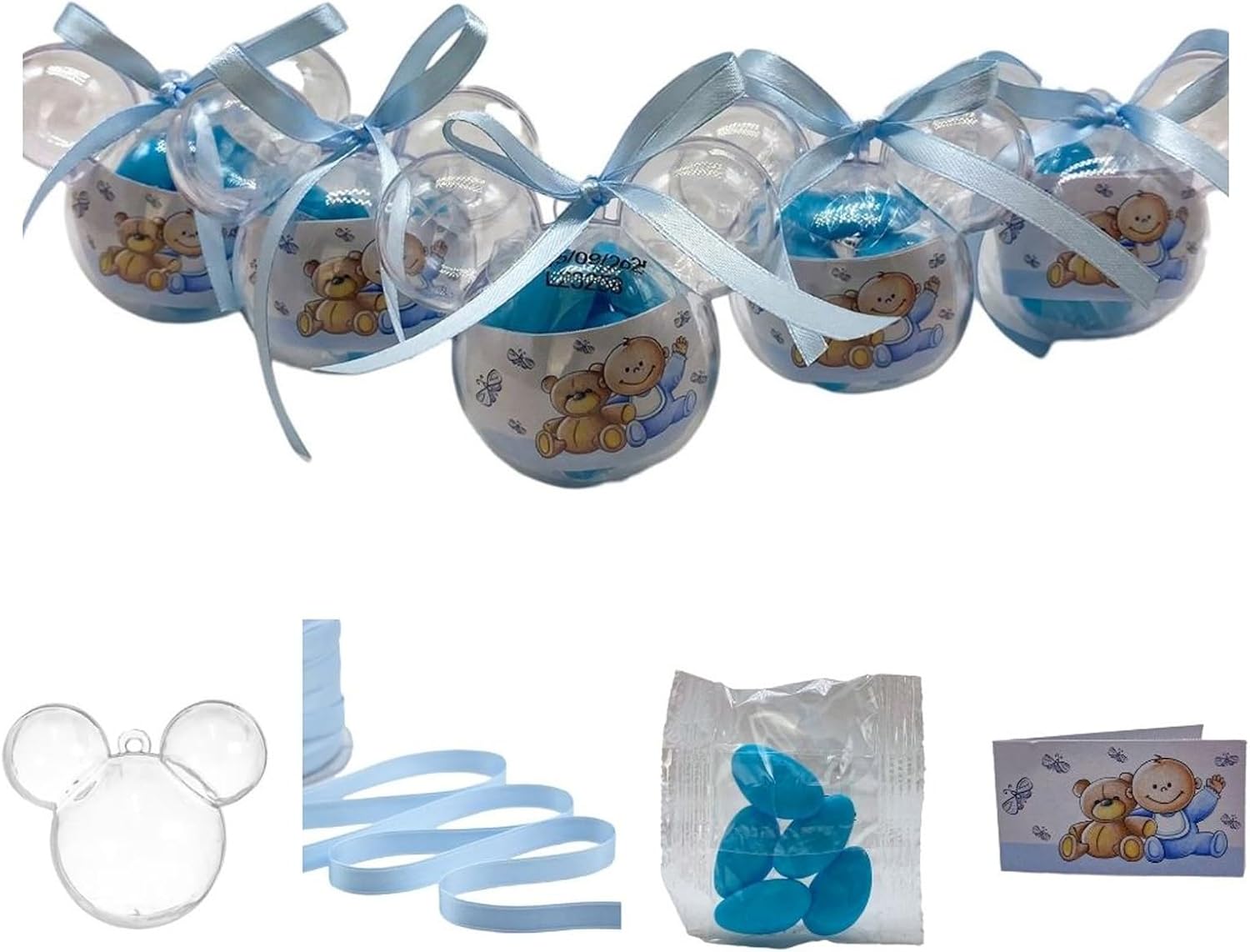 Venta al por mayor y ahorro: Regalo de nacimiento, 12 cajas de plexiglás de Mickey Mouse, 12 bolsas de confeti celeste, MAXTRIS, 12 tarjetas de bebé personalizables, bautizo, gadget de cumpleaños (Do