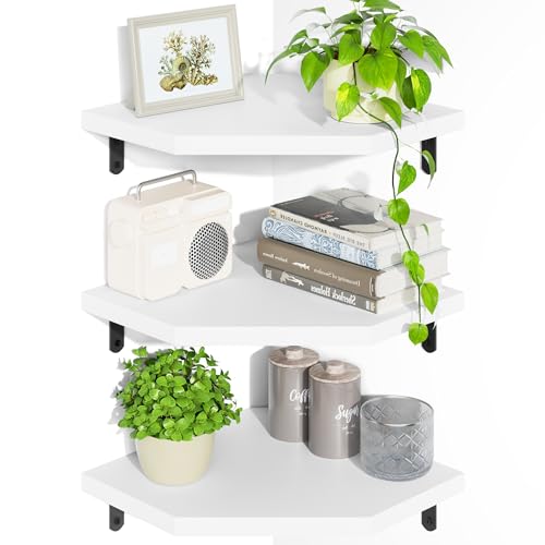 Estante de pared esquinero Alsonerbay blanco, juego de 3 estantes esquineros de madera, estante flotante colgante para dormitorio, cocina, sala de estar, oficina y baño.