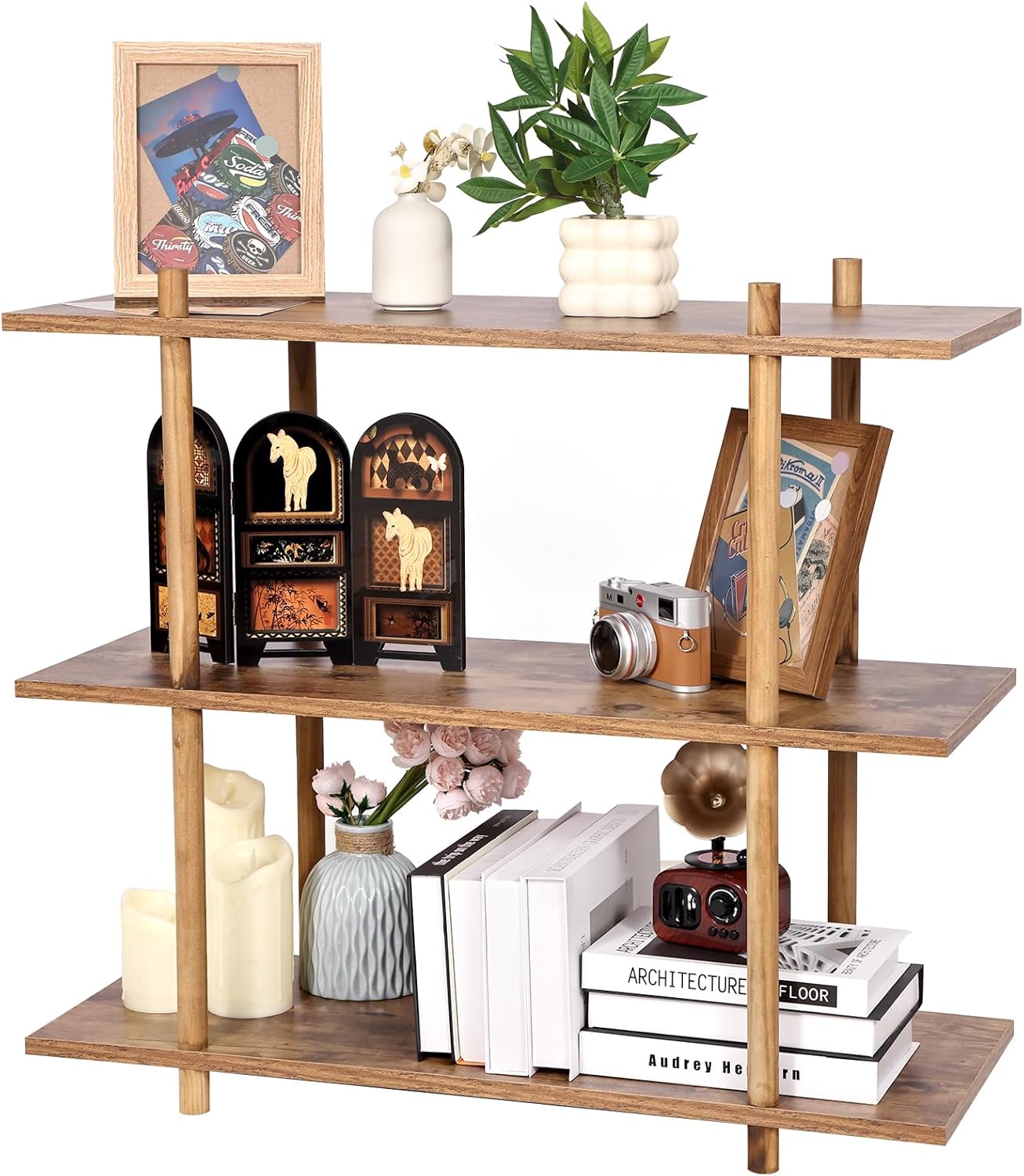 GERYMU Estantería abierta de 3 niveles para salón, estantería de pie, 30 x 80 x 67,5 cm, consola vintage para dormitorio, estudio y cocina, color marrón rústico