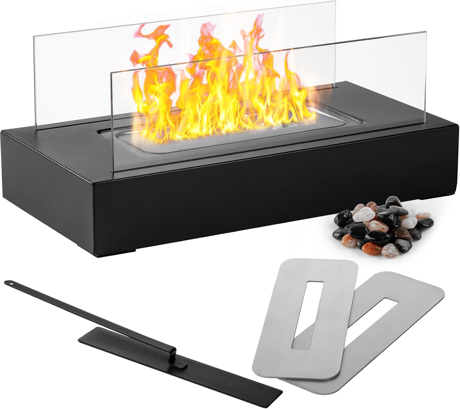 Chimenea de mesa Ceblish [3 h de autonomía] | Juego de fogatas para interior y exterior | Chimenea de etanol con llama regulable y piedras de colores | Chimenea de mesa de bioetanol