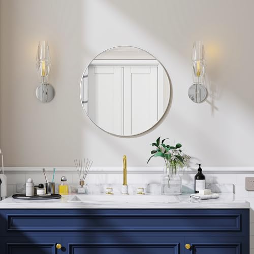 Espejo de pared redondo Koonmi de 50 cm, plateado, con marco de metal cepillado. Ideal para baño, tocador, sala de estar, dormitorio o entrada.