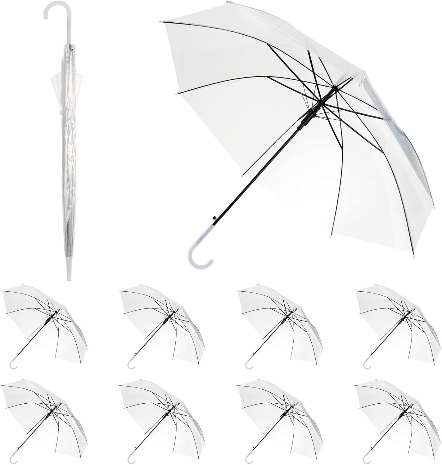 CODOHI Juego de 10 paraguas transparentes, 95 cm, para bodas, paraguas grandes transparentes tipo cúpula con 8 varillas, paraguas blancos semitransparentes con mango automático para mujeres, hombres, novias y damas de honor.
