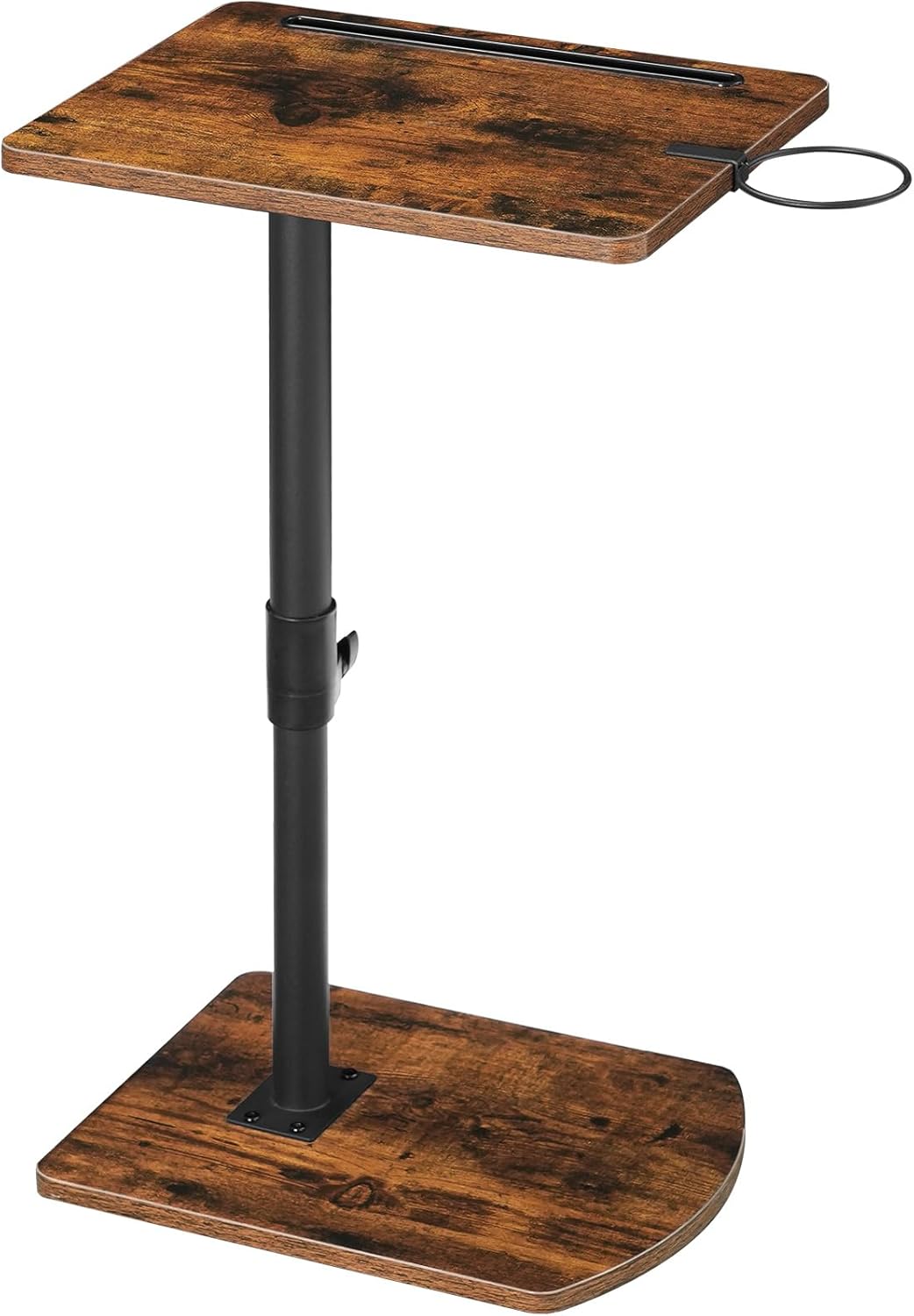 Mesa auxiliar HOOBRO en forma de C, regulable en altura de 45,5 a 78 cm, mesa de sofá giratoria de 360° con portavasos y ranura, se desliza debajo del sofá o la cama, marrón vintage y negro EBF34SF01
