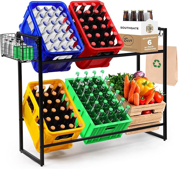 SOUTHGATE Estantería para 6 cajas de bebidas, de metal, estable, para cerveza, frutas, verduras, agua, altura ajustable, para cocina, despensa, garaje, bar, color negro