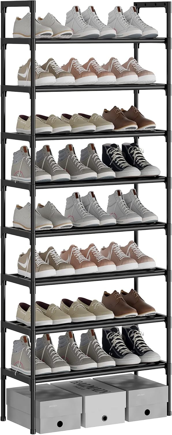 Zapatero ajustable AcornFort® S-536 de 8 niveles, color negro. Organizador alto para 24 pares de zapatos. Medidas: 56 x 30 x 140 cm. Construcción extra resistente.