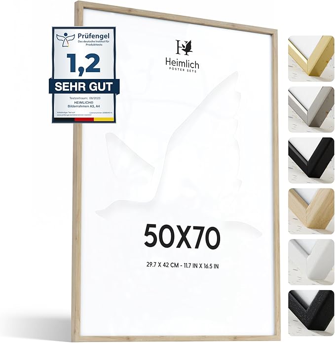 Heimlich® - Marco de fotos - 50 x 70 cm, madera de roble - Marco grande para collage DIY con cubierta de plástico - Solo para montaje en pared