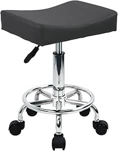 Taburete de oficina cuadrado WKWKER de piel sintética con reposapiés y altura ajustable, ideal para spa, salón de dibujo, estudio de tatuajes, oficina o cocina (gris)