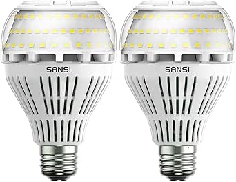 Bombilla LED SANSI E27 de luz blanca fría, 27 W (reemplaza bombilla incandescente de 250 W), regulable, 5000 Kelvin, 4000 lúmenes, superbrillante, paquete de 2
