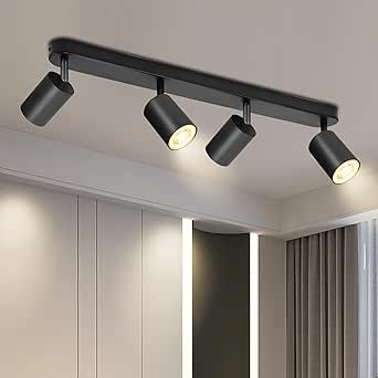 Foco de techo BOYIR de 4 luces, negro, giratorio, LED GU10 de 350°, foco de pared giratorio, lámpara de cocina, foco para salón y pasillo (bombillas no incluidas).