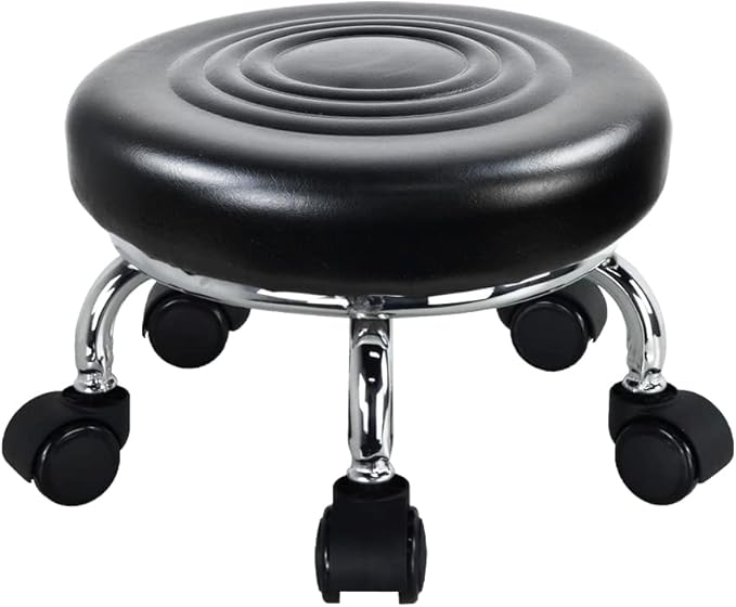 Taburete rodante PU Asiento de Rodillos de Cuero 360 ° Taburetes giratorios con Ruedas giratorias universales para Masaje en el hogar Jardín Oficina Garaje Tienda, H: 21.3.5cm (Negro)