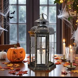 Faroles decorativos JHY DESIGN de ??30 cm de alto para exterior, candelabros vintage de metal para uso en interiores y exteriores, fiestas y bodas (negro con pincel dorado).