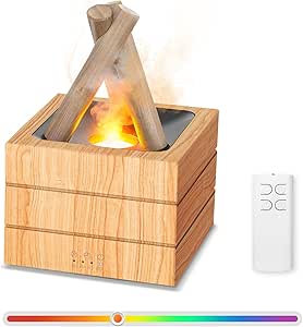Difusor de aromaterapia con forma de llama de fogata para aceites esenciales, humidificador de madera de 280 ml con vapor frío para el hogar, el dormitorio y la oficina, control remoto, apagado automático y luz nocturna.