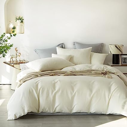 Lanqinglv Juego de ropa de cama de 135 x 200 cm, 4 piezas, color blanco y crema, microfibra, monocolor, 2 fundas nórdicas de 135 x 200 cm con cremallera + 2 fundas de almohada de 80 x 80 cm