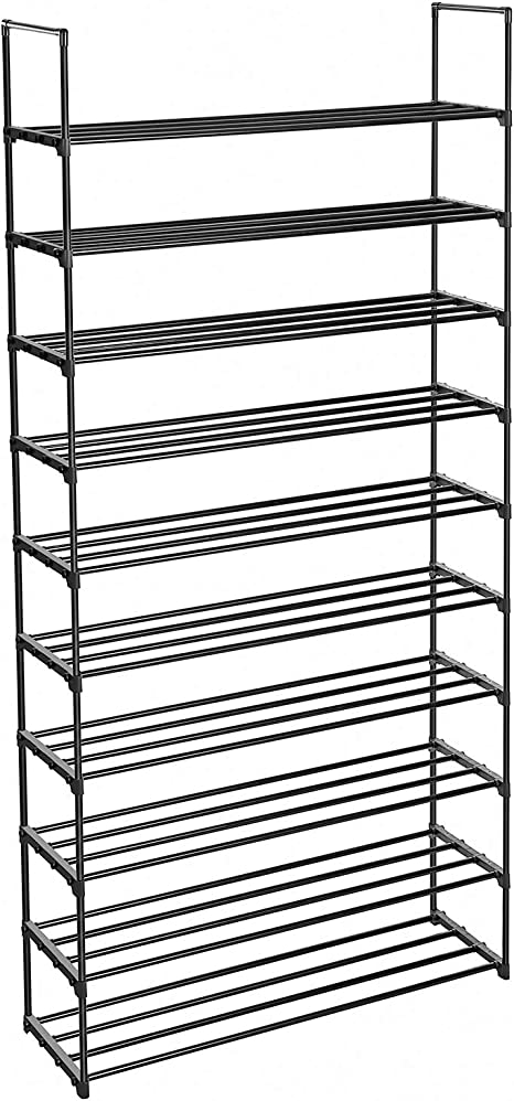 SONGMICS Zapatero de 10 Niveles, Estantes Metálicos para Guardar hasta 50 Pares de Zapatos, para Sala de Estar, Entrada, Vestíbulo y Guardarropa, 92 x 30 x 194 cm, Negro LSA10BK