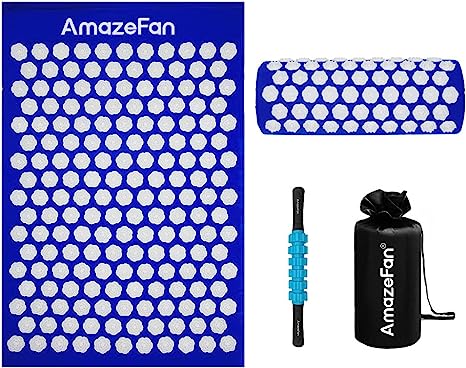 AmazeFan Juego de acupresión para relajación, cojín de acupresión para aliviar el dolor de cabeza y cuello con una bolsa de transporte, con rodillo para músculos