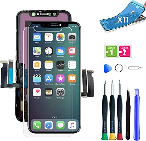 Para iPhone Xs Pantalla Táctil de Reemplazo de Pantalla Digitalizador de Pantalla Táctil iPhone Xs Herramienta de Reparación de Marco + Tiras Adhesivas Compatible con Modelo A1920, A2099, A2100