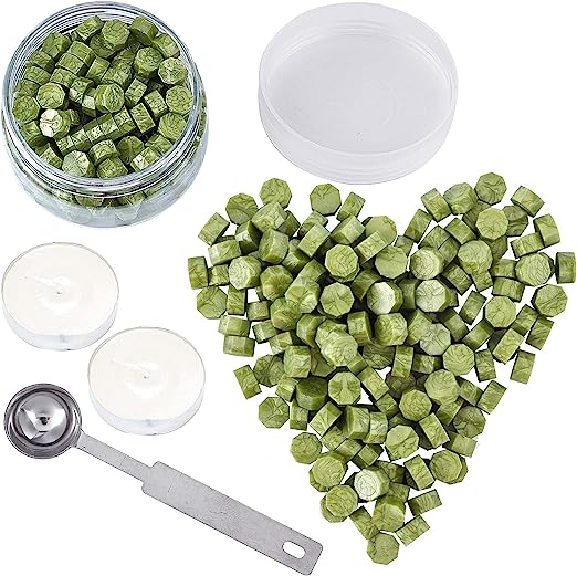 CRASPIRE - Juego de Cuentas de Cera para Sellar, 210 Pieza, Juego de Cuentas de Cera para Sellar con 1 cucharas de Fusión Y 2 Velas de Candelita para Sello de Cera, Letra, Regalo de Boda