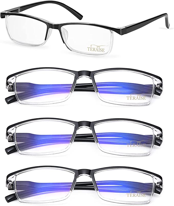 TERAISE 4PCS Gafas de lectura anti luz azul, ligeras y cómodas gafas de lectura para hombres y mujeres, Lectores luz azul para computadora / teléfono incluido estuche para gafas