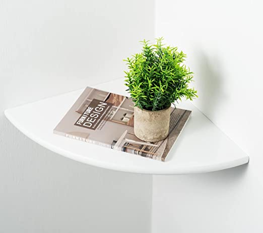 Estante de esquina blanco, estante flotante de madera de roble macizo, estante de exhibición de extremo redondo, altavoz flotante, estante de monitor de enfermería, decoración de pared para cocina, sala de estar, dormitorio de 30 cm