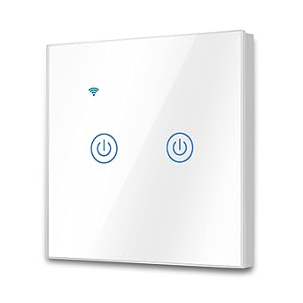 EXTRASTAR Interruptor de Pared Táctil Wi-Fi, 2 Vías, 2 Canales, Compatibilidad con asistentes inteligentes como Google Home y Amazon Alexa Se Requiere Cable Neutro
