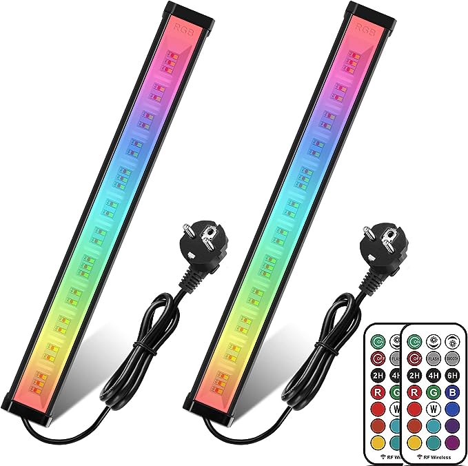 MEIKEE Foco RGB de 42 W con control remoto, reflector de bañador de pared de 360°, 12 colores, 2 modos, temporizador, 6 niveles de brillo, función de memoria, foco LED, barra RGB para bar, fiesta, discoteca, celebraciones, escenarios, paquete de 2 [Clase de eficiencia energética F]